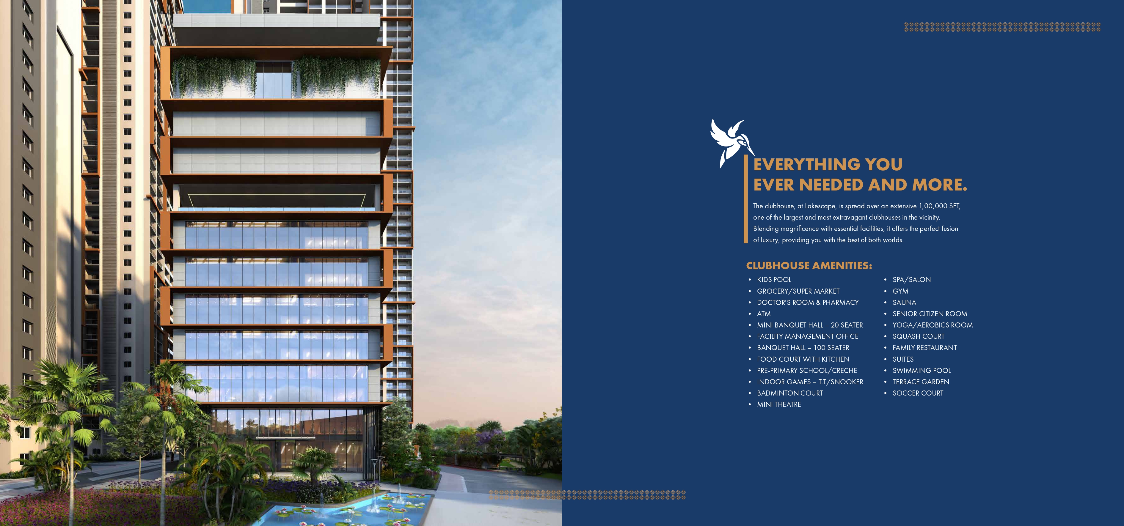 50+ Amenities: From state-of-the-art fitness centers to rejuvenating spa facilities, we ensure that every aspect of your lifestyle is enriched with luxury and comfort.