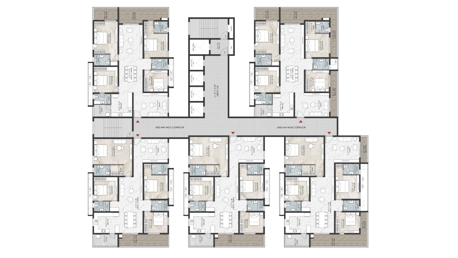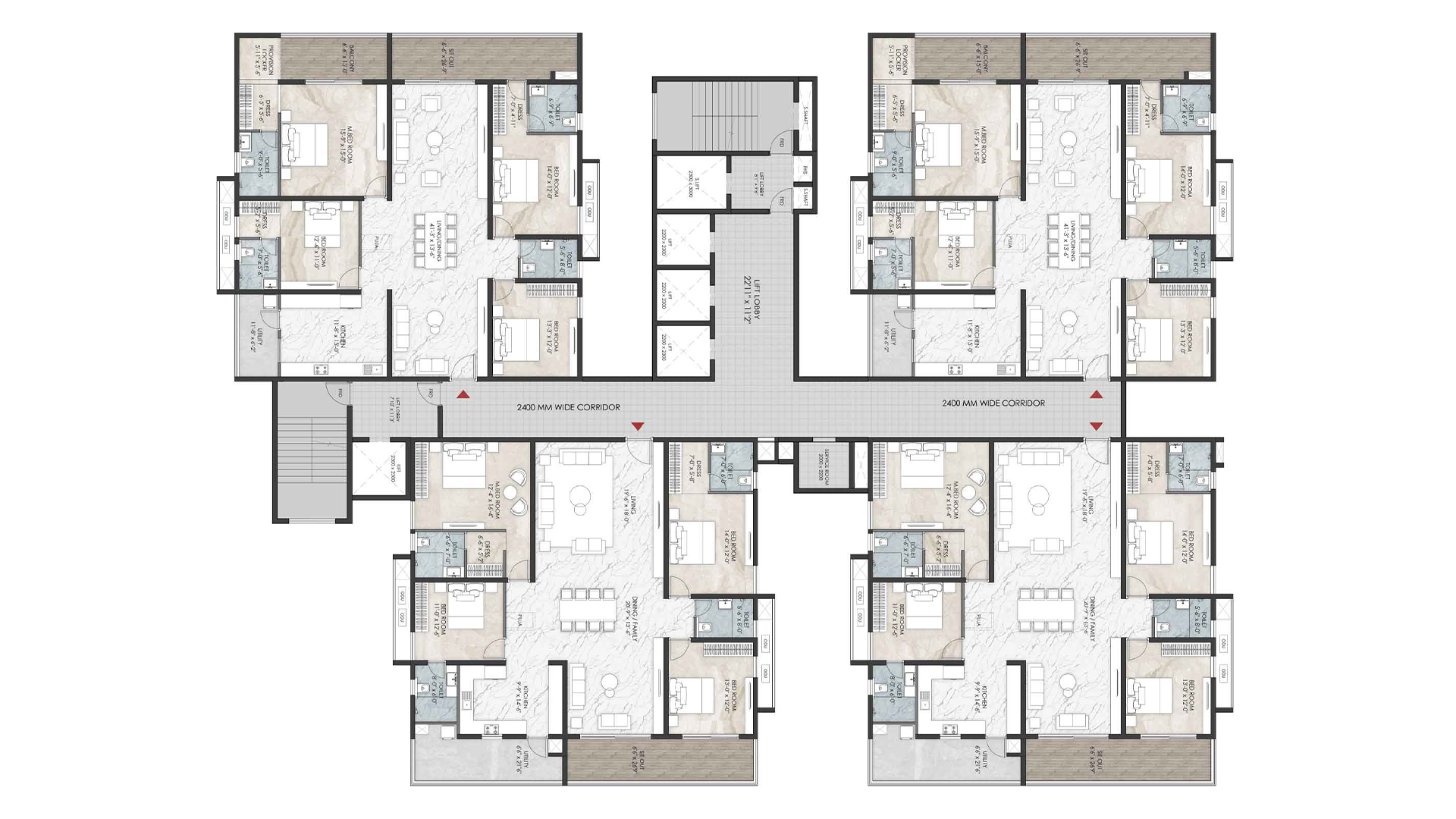 where luxury meets tranquility in the heart of Kondapur, Hyderabad. Nestled amidst the bustling corporate hub, Vrindavan offers an unparalleled lifestyle experience, redefining urban living with its premium residences and state-of-the-art amenities. Spanning across a vast expanse of 9.75 acres, Vrindavan boasts a total area of 4,24,624 sq.ft. with its eight majestic towers, soaring up to G+49 floors. With a range of spacious options from 2 to 4 BHK, spanning from 1490 sq. ft. to 3320 sq. ft., every home at Vrindavan is meticulously designed to exude comfort and opulence. Step into our lavish clubhouse, spanning over 1,35,000 sq. ft. and rising up to G+5 floors, designed by Landscaping Designer, based in Singapore, and Architectural Designer, renowned across the country.