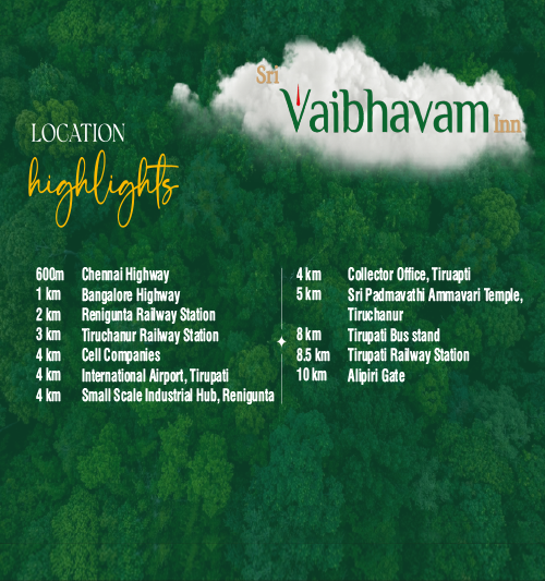 Sri Vaibhavam Inn enjoys a prime location in Renigunta, Tirupati, offering excellent connectivity to key transport and civic hubs: